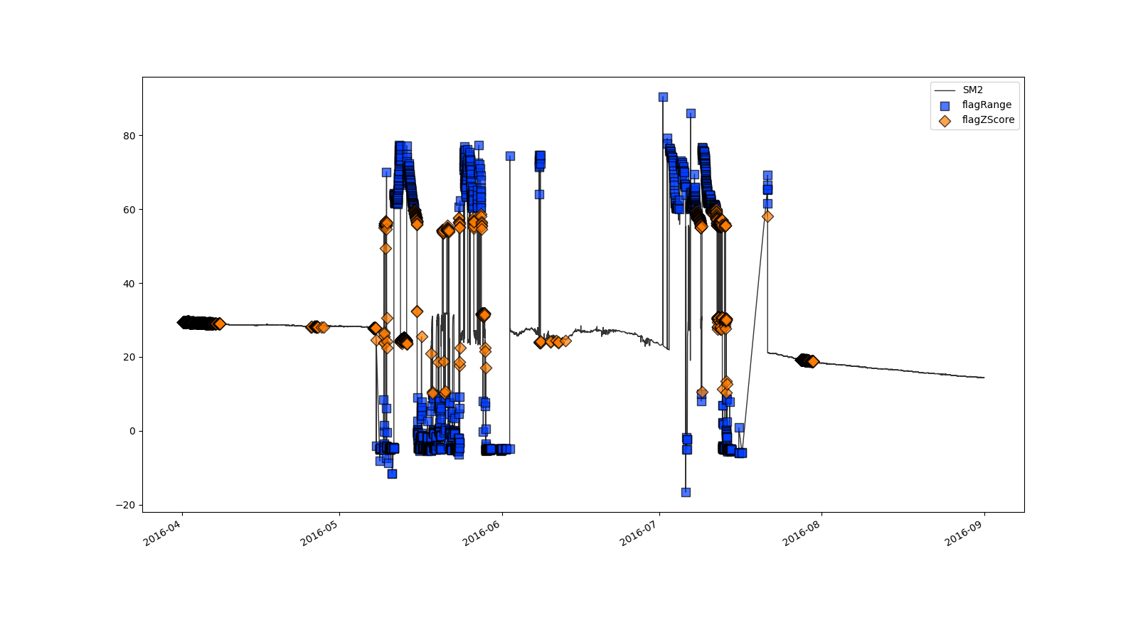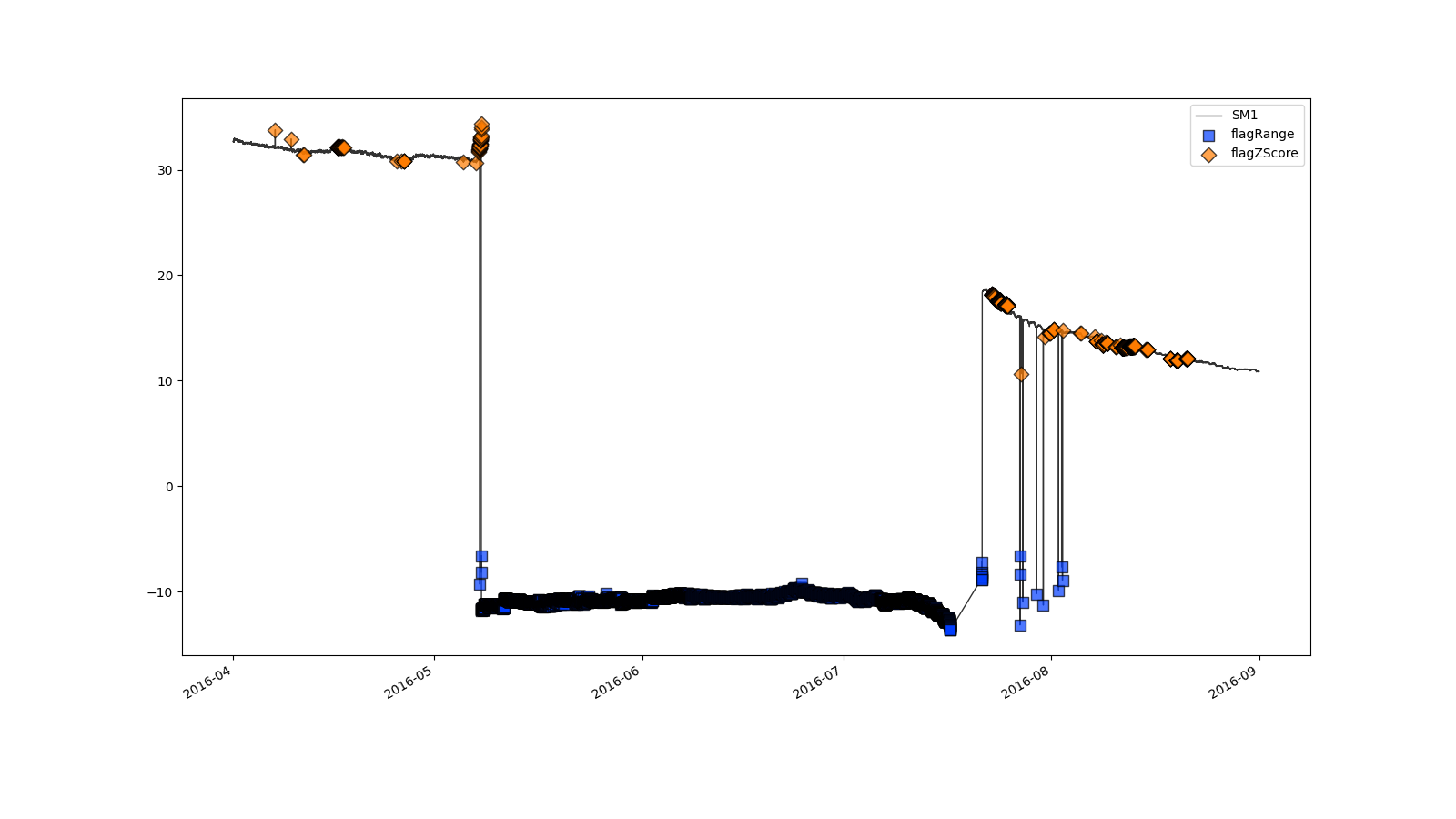 SM2;flagZScore(window="30d", thresh=3.5, method='modified')